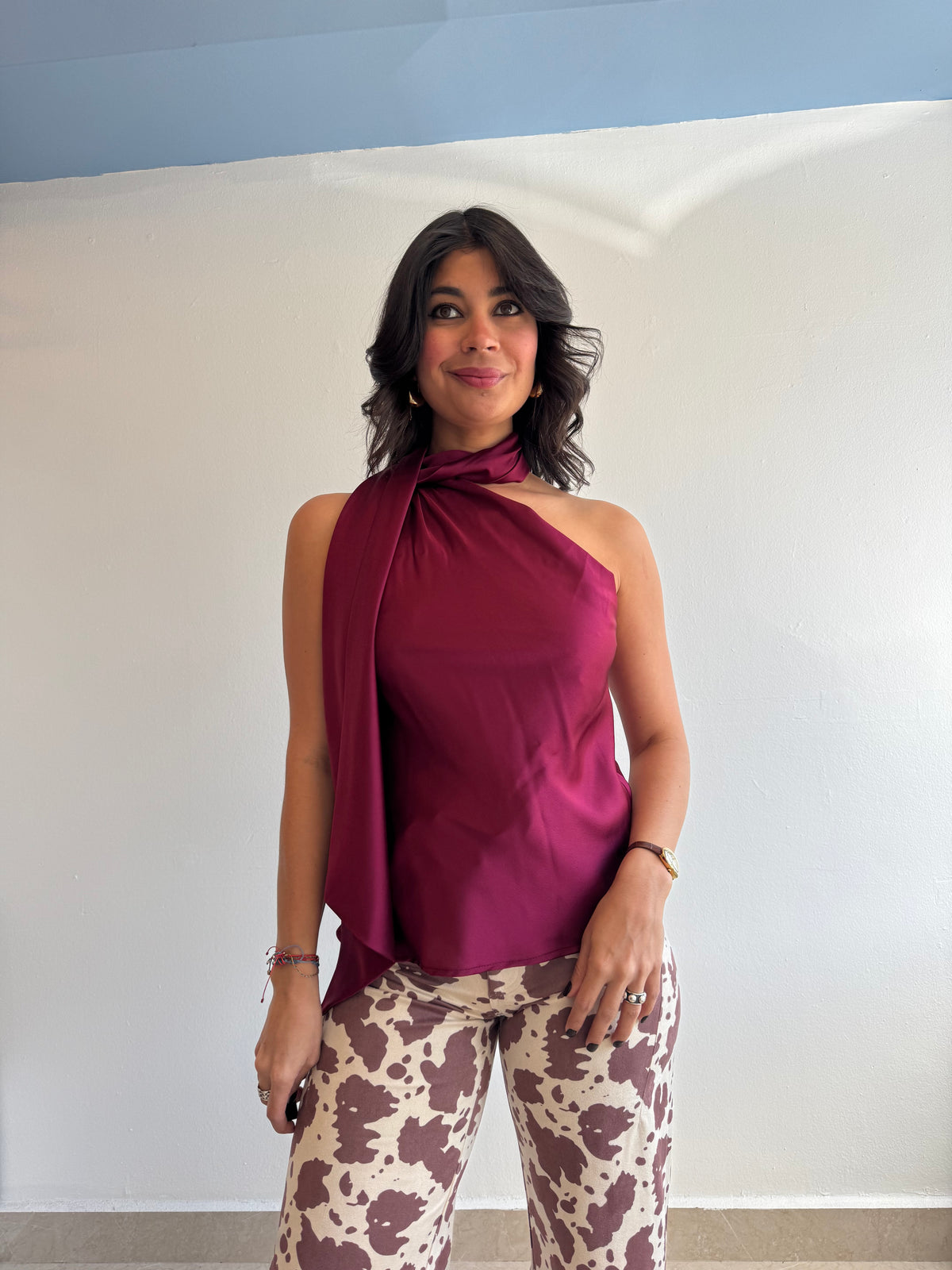 Satin one shoulder top