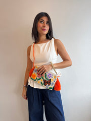 Carteras hechas a mano por diseñadora de Colombia proyectando los colores vivos del caribe.