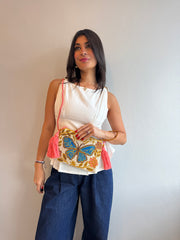 Carteras hechas a mano por diseñadora de Colombia proyectando los colores vivos del caribe.