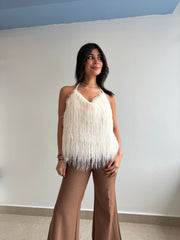 Fuzzy fringe halter tank top