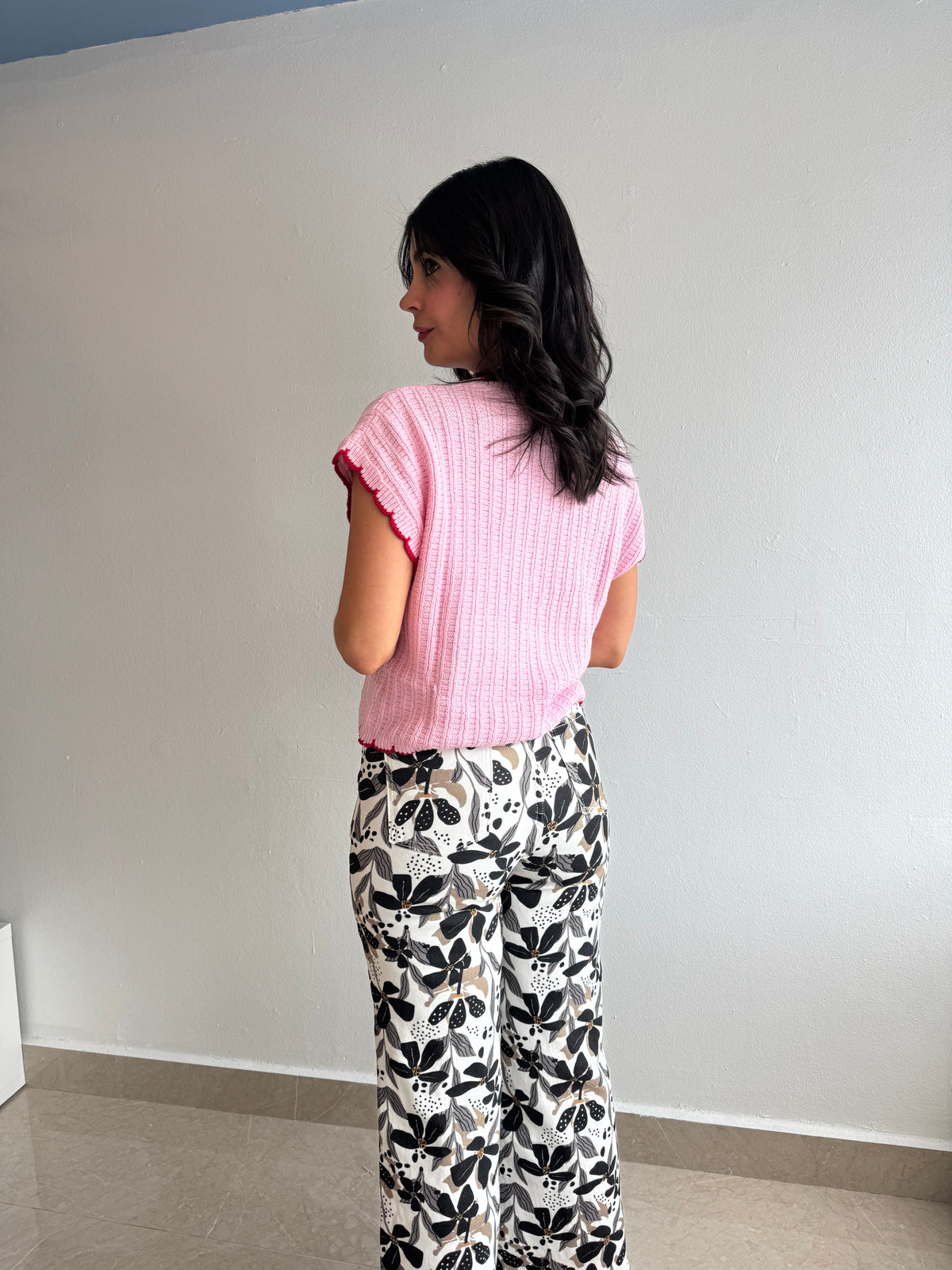 Contrast scallop edge detail Pointelle sweater top