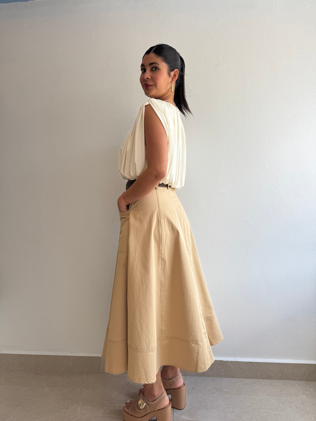Midi skirt with belt
