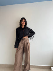 Mid rise pleated wide leg pants