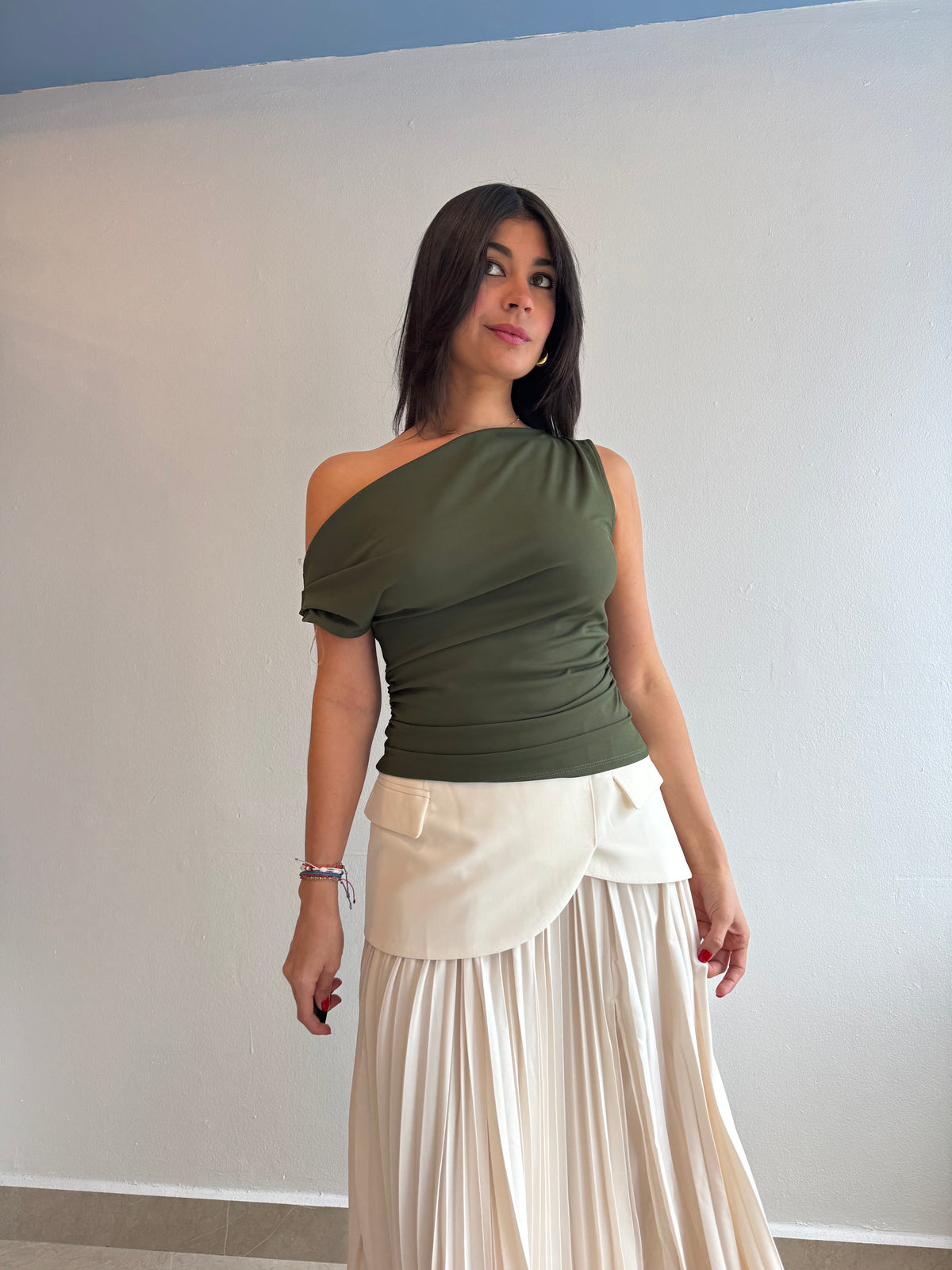 One shoulder slant top