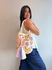 Carteras hechas a mano por diseñadora de Colombia proyectando los colores vivos del caribe.