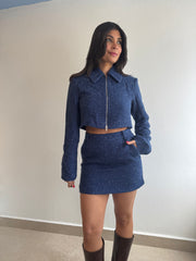 Mixed tweed jacket two way zipper