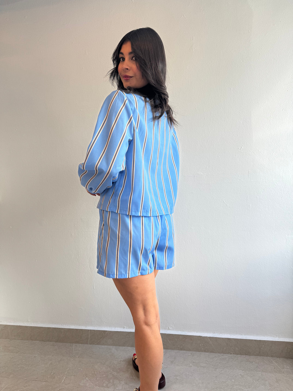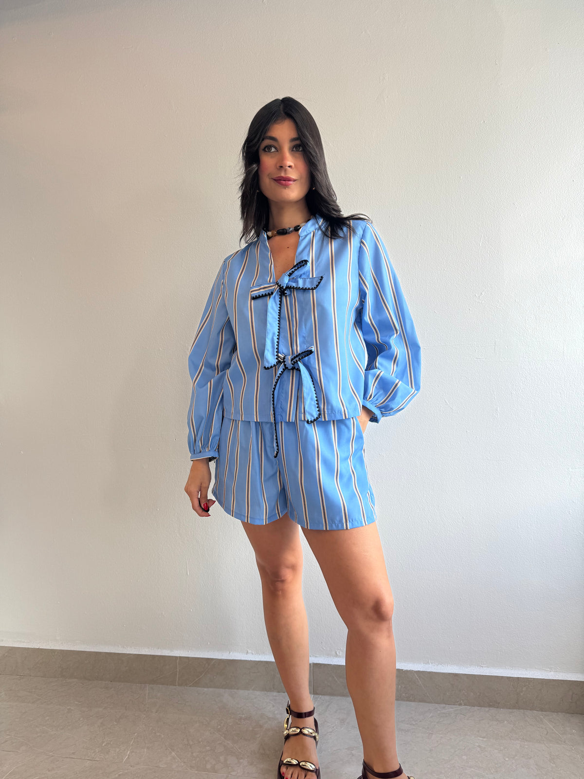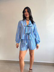 Striped ribbon top and shorts set